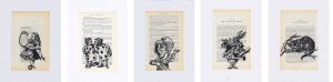 Lino Prints onto pages out of old books